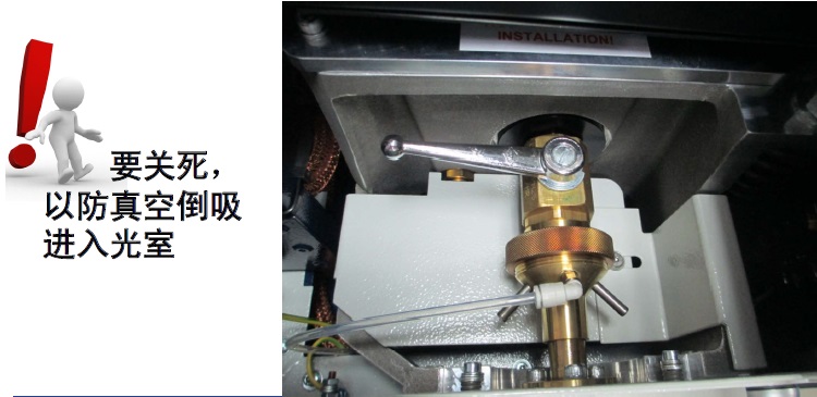 第五步:关闭真空球阀(要关死,以防真空倒吸进入光室)