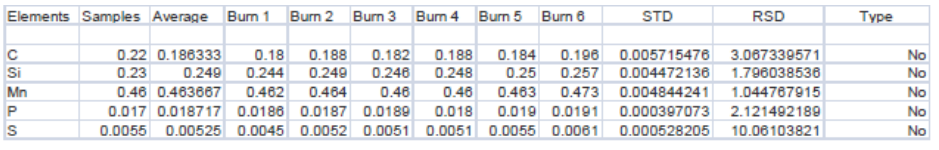 以PMI-MASTER Smart对石化行业有特殊要求的低硫磷20#钢管件中硫磷含量是否达标进行检测验证,分析结果如下: