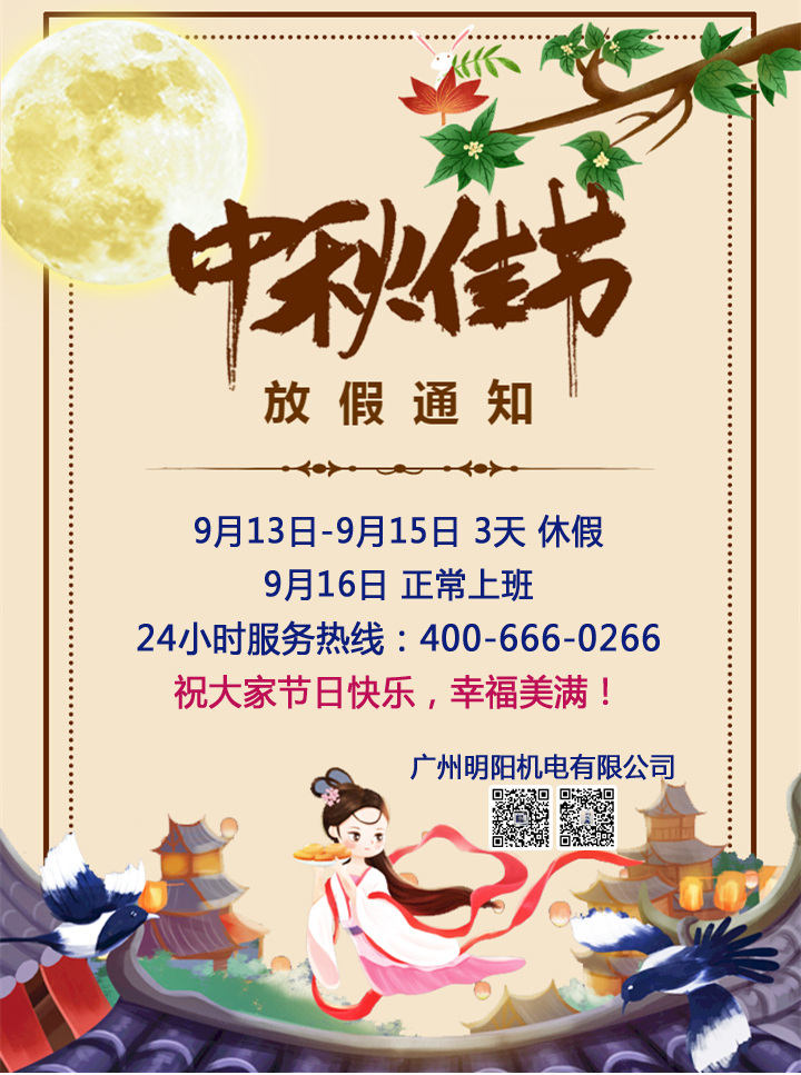 一年一度的中秋佳节即将到来,明阳机电全体员工在此提前祝广大客户中秋佳节快乐,阖家团圆,幸福美满,工作顺利!
